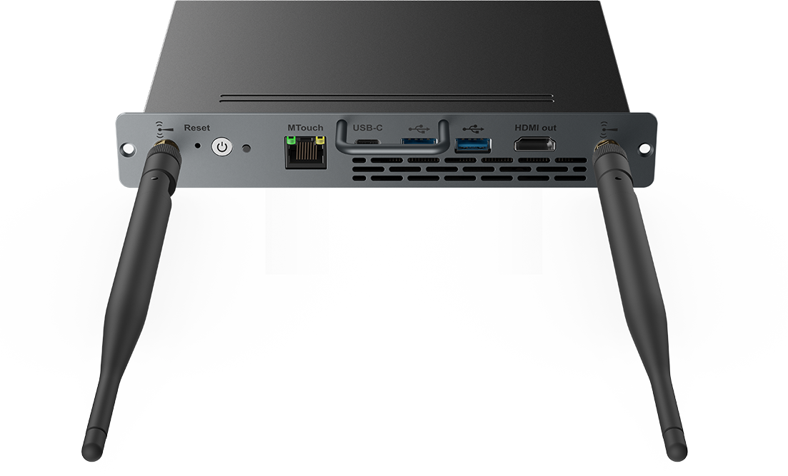 Yealink MCore-OPS é uma solução de computação modular especialmente projetada para  quadros brancos interativos.  Módulo de computação plugável (Windows) com um personalizado integrado Imagem de Teams Rooms , pode ser conectado à interface OPS do MB65/86 como um sistema secundário para o MB65/86.